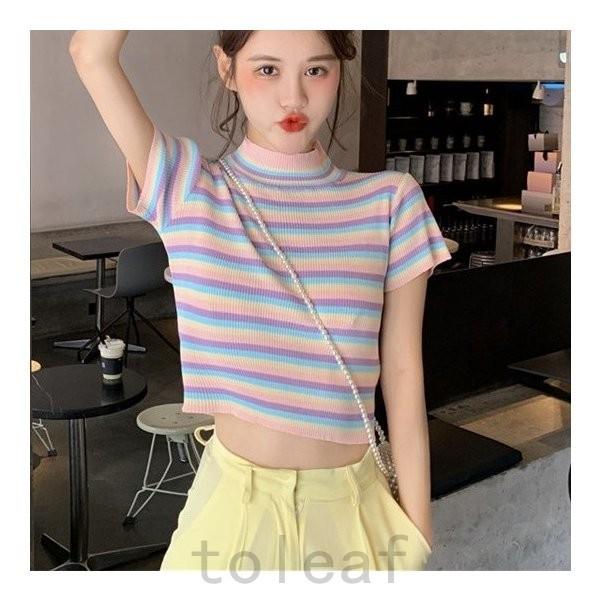 トップスレディースカットソーtシャツ半袖ボーダーショート丈カラフルフェミニン可愛い春夏 Sma R05xrhkq Toleaf ヤフーショップ 通販 Yahoo ショッピング
